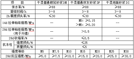 3.產(chǎn)品呈干燥粉狀型密度: 砌筑類≤1.7t/m3 抹灰類≤1.65t/m3 地面類≤1.8t/m3 其中砌筑類拌合物表觀密度>1.8 t/m3。