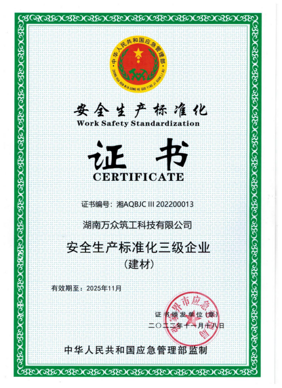 筑工科技:安全標(biāo)準(zhǔn)化三級(jí)企業(yè)