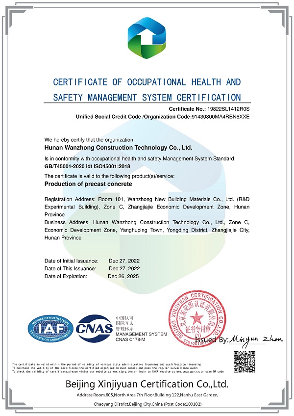 職業(yè)健康安全管理體系認證證書